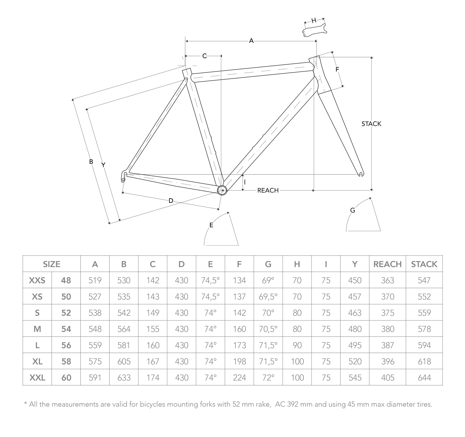 Round tubes, top tube Ø 31.8mm, seat tube Ø 31.8mm, downtube Ø 44mm bi-oval.